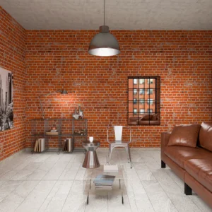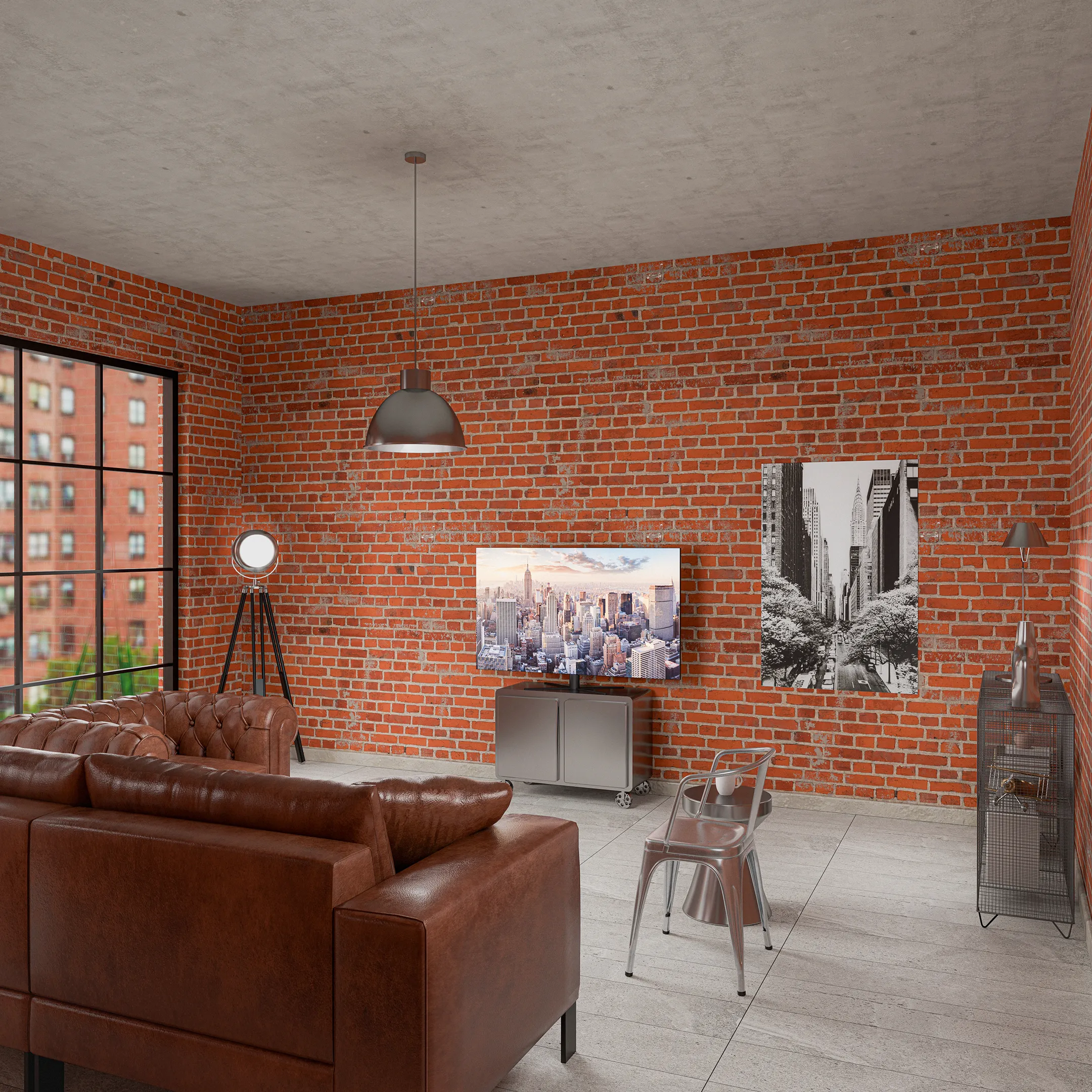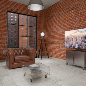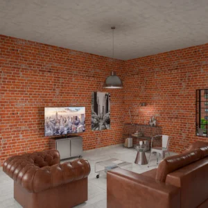 Un living che esprime energia e struttura, dove l’acciaio lucido dialoga con la trasparenza del vetro e la matericità dei mattoni trattati. Il divano, dai volumi generosi, è rivestito in pelle e diventa il fulcro dello spazio. Elementi metallici e superfici specchiate o riflettenti introducono profondità e ritmo visivo, definendo un ambiente deciso e aperto.